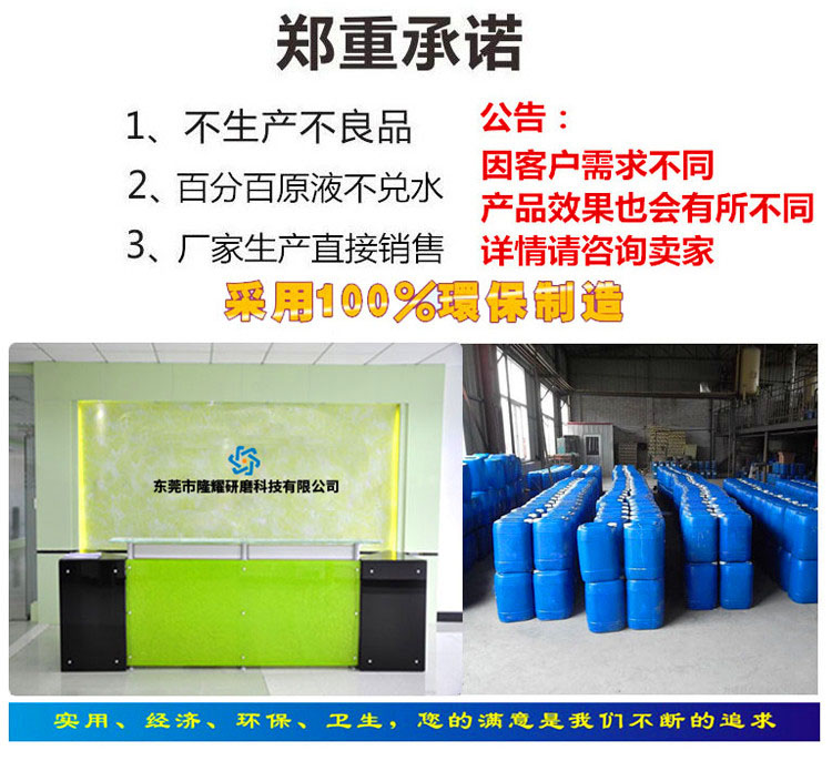 研磨液產(chǎn)品為微白透明粘液體,產(chǎn)品廣泛用于不銹鋼、黑色、有色金屬等零部件去毛刺、光亮作用,該產(chǎn)品無毒,對(duì)人體無危害,不污染環(huán)境,是各類金屬零部件、組裝前、外部光飾等理想產(chǎn)品。